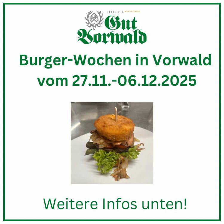 Vom 27.11.2025 bis zum 06.12.2025 finden die Burger-Wochen in Gut Vorwald statt.