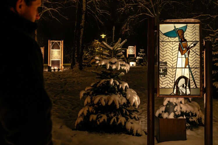Ab Einbruch der Dämmerung erstrahlen insgesamt 16 liebevoll restaurierte Kirchenfenster im warmen Schein des Lichts. Genieße eine stimmungsvolle Atmosphäre abseits des Trubels und der Hektik des Alltags und lass die Kunstwerke auf dich wirken.