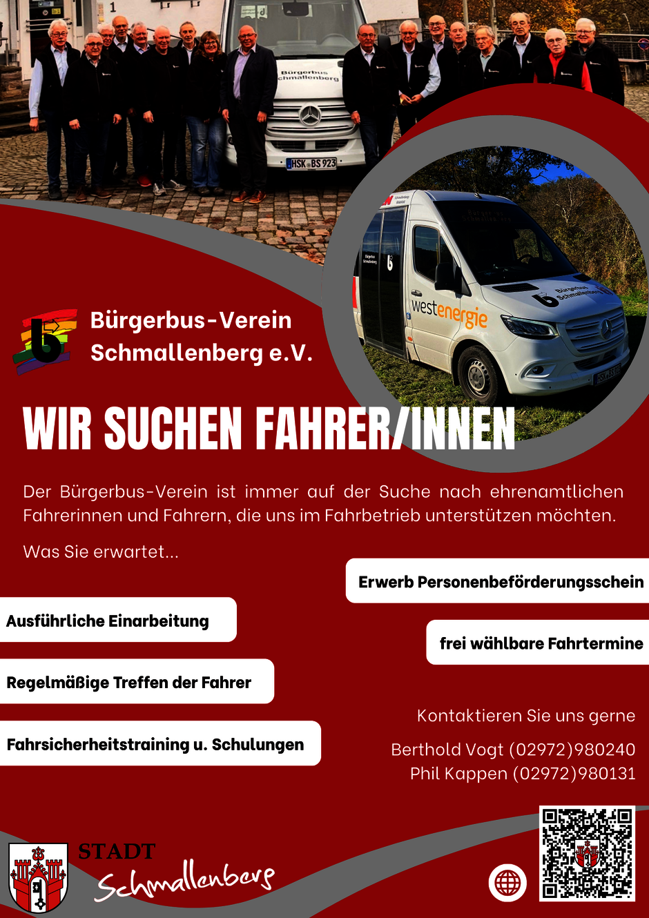 Unter dem Motto "Bürger fahren Bürger" ist der Bürgerbusverein Schmallenberg im Jahr 2002 gegründet worden. Ziel des Vereins ist es, in enger Zusammenarbeit mit der Stadt Schmallenberg den Bürgern in unserer Stadt mehr Mobilität zu verschaffen.
