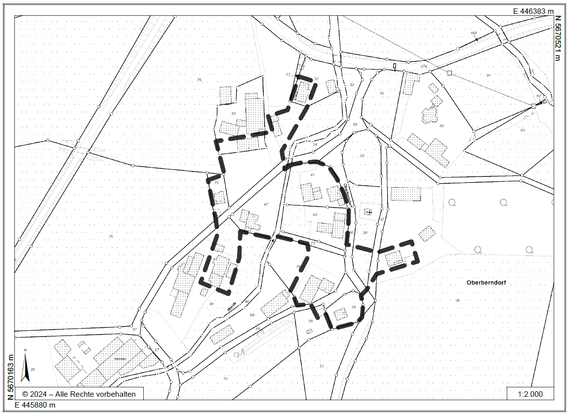 Der nachfolgende, vom Rat der Stadt Schmallenberg am 06.02.2025 gefasste Satzungsbeschluss zur Außenbereichssatzung „Ortslage Oberberndorf“, Ortsteil Oberberndorf: